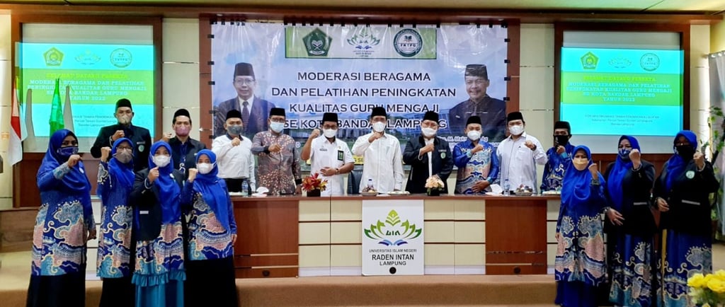 UIN Raden Intan Lampung (RIL) melalui Pusat Kajian Moderasi Beragama (PKMB) bekerja sama dengan Kementerian Agama (Kemenag) Provinsi Lampung menyelenggarakan kegiatan Moderasi Beragama serta Pelatihan Peningkatan Kompetensi Guru Mengaji se-Kota Bandar Lampung. Acara ini berlangsung di Ruang Seminar lantai 3 UIN pada Selasa (15/2/2022).
